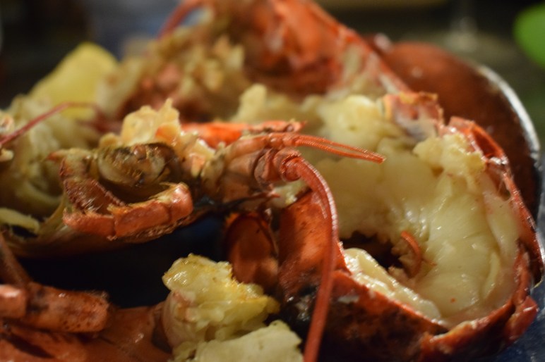 Valentine’s Day. We have never gone all out for painting the town pink with roses, chocolates, cards and stuffed animals, but beyond the chaotic supermarket isles of tat it’s still nice, I think, to celebrate an annual holiday of love and romance. Quite how this sentiment lead me to butchering live lobster, making homemade mayo and plunging sliced spuds into hot fat remains to be solved. However, here we are, with our valentine’s traditional supper of grilled lobster – always with butter, garlic, chips in some form or another.