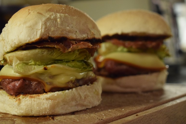 Emily grew up with ‘mummy burgers’, less a cannibalistic nightmare and more a scrummy concoction of beef patty, back bacon, burger cheese and bbq sauce patented by my mother in law. I myself grew up in a house petrified beyond reason by the BSE crisis long after UK beef was certified safe, so I only have perfectly serviceable lamb burgers at summer BBQs as a frame of reference.