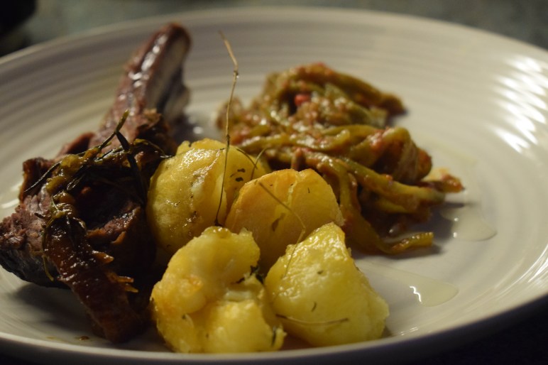Shown here with roast kid and spuds from the yard, the spices here could be switched out with others for different occasions. Garam masala would make a nice change or on a different day perhaps ras el hanout would work well.