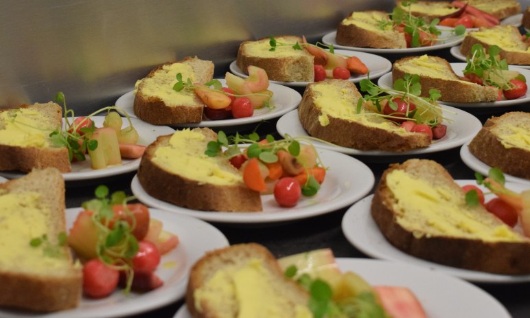 The full menu can be seen here. In my next few Katherine St Kitchen posts I’m going to share some of the recipes in the hope that if you weren’t able to join us, you can sample some of what we served from home. This first one was a cover or table course as our guests arrived. A granary loaf made with a fresh, spicy Augustiner Helles lager, spread thickly with malty, tangy beer butter and plated alongside some ‘quick’ pickled vegetables.