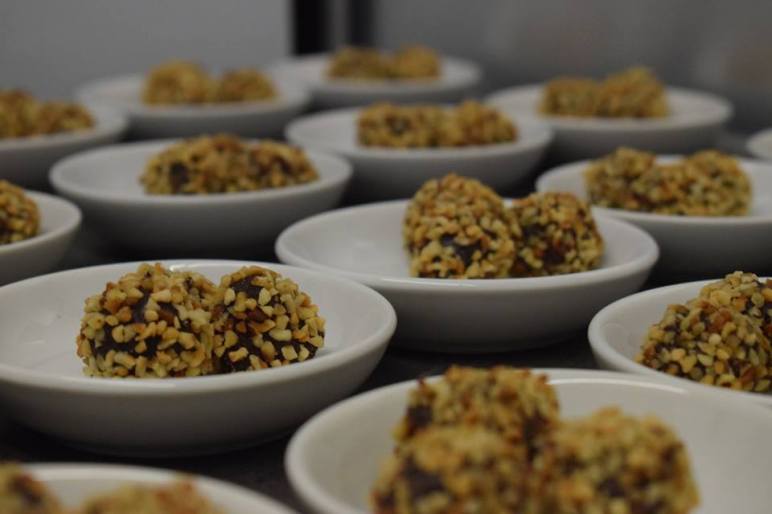 - Once cooled, roll into even sized truffles and roll in the hazelnuts.